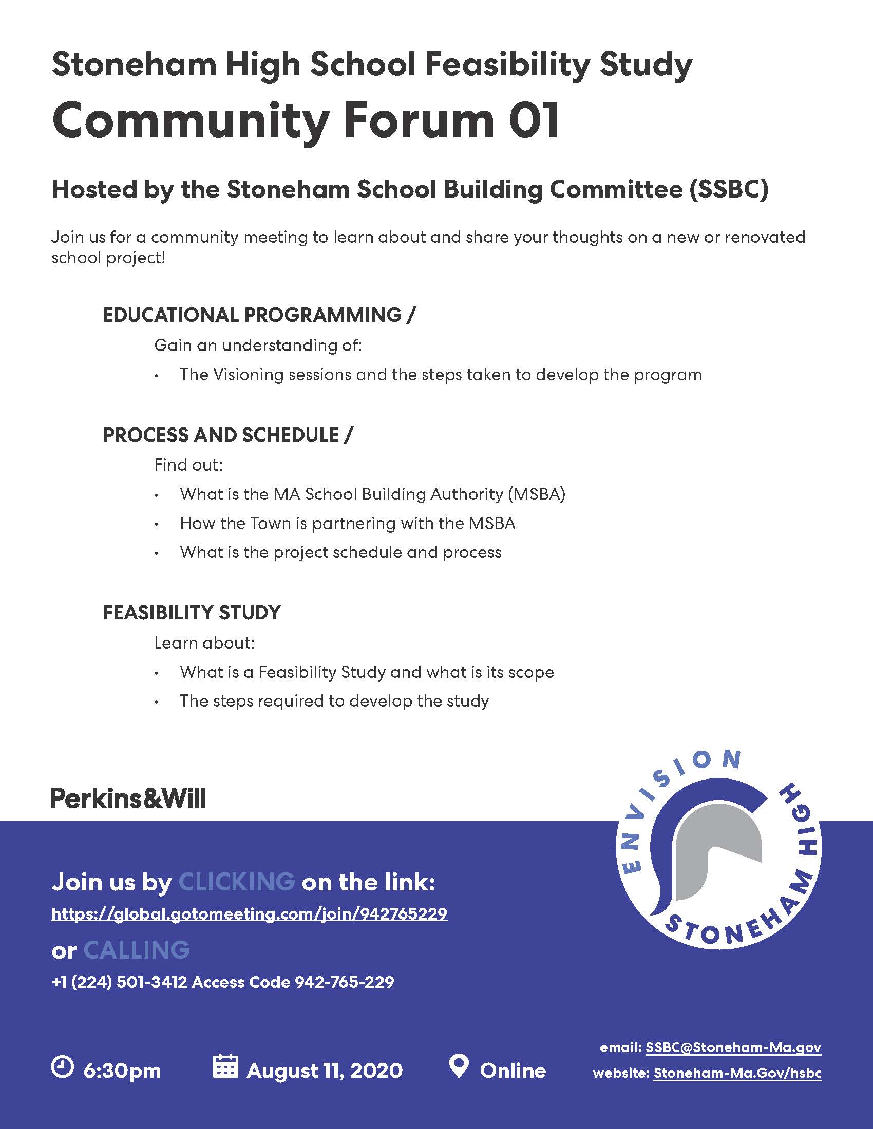 The Stoneham School Building Committee (SSBC) invited residents and community stakeholders to an interactive online presentation to update you on the planning of the Stoneham High School Project. The SSBC is in the feasibility phase of the process, and we are looking for community input.